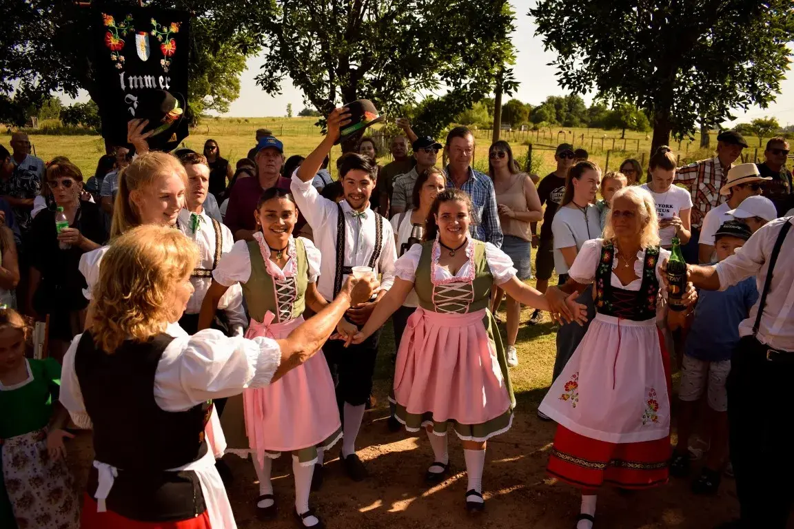 El aniversario comenzó con el tradicional desfile de los ballets por las calles de la Aldea. Danzas, trajes típicos y melodías colmaron el aire de memoria viva, evocando las raíces germano–argentinas que sostienen nuestra historia. Fue un recorrido cargado de emoción, donde cada paso y cada aplauso reafirmaron el orgullo de pertenecer.