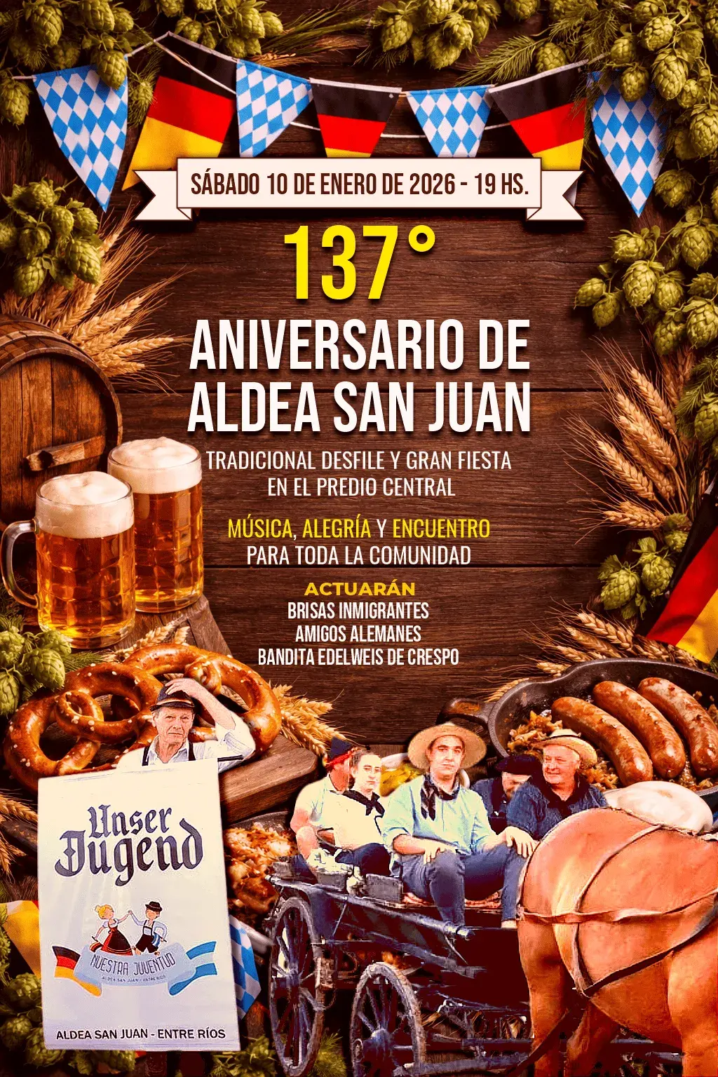Sábado 10 de enero de 2026, la querida Aldea San Juan celebrará sus 137 años de historia. Los festejos comenzarán a