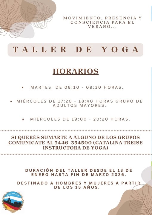 13ENE(ENE 13)8:10 am25mar(mar 25)8:20 pmENERO FEBRERO y MARZO - Taller de Yoga