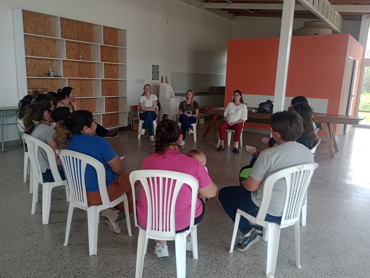 El encuentro contó con la participación de Sofía Ramundo, Vanesa Michel y Camila Streck, quienes estarán a cargo del espacio; también estuvo presente Lucía Siri, referente del Área de Desarrollo Social de la Comuna, junto a madres de niños y adolescentes inscriptos al taller.